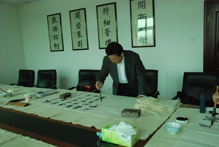 为弘扬传统文化,丰富员工业余生活,5月6日上午,中航建设集团有限公司举办了首届书画艺术学习交流活动。本次活动邀请了中国书法家协会会员孟云飞博士、中国书法家协会理事张铜彦先生、中国书法家协会编辑出版委员会副主任王荣生教授、人民艺术家协会理事于瑛先生等国内知名书画大师,各位书画大师在活动现场进行了艺术创作表演,挥毫泼墨,交流技艺,为中航建设集团有限公司留下了数十副墨宝,还对部分员工的书画作品进行了悉心指导。公司员工现场欣赏了书画大师的艺术创作,并聆听了有关书画艺术鉴赏知识的介绍,部分员工还在活动现场进行创作,听取书画大师的讲解示范和点评。